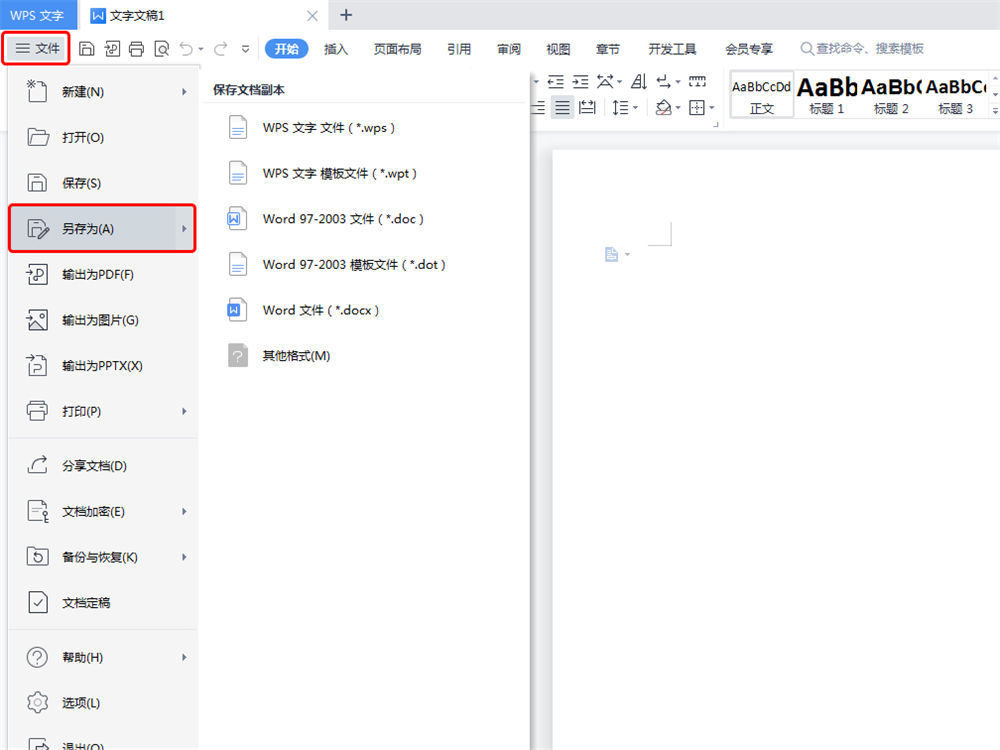 2、点击“文件”菜单中的“另存为”;