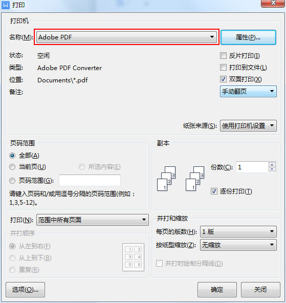 1、安装“pdf打印机”:安装“AdobePDF”阅读器或单独安装“AdobePDF虚拟打印机”。安装完成后,在“控制面板”-“设备和打印机”中可以看到“Adobe PDF”打印机图标,即表示安装成功。