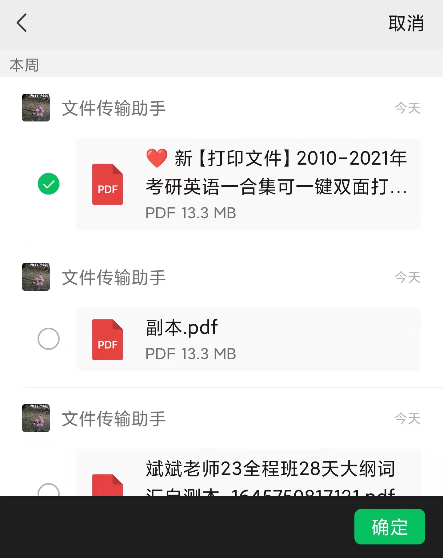 勾选您需要上传的文件,点击右下角的“确定”按钮,即可开始上传。