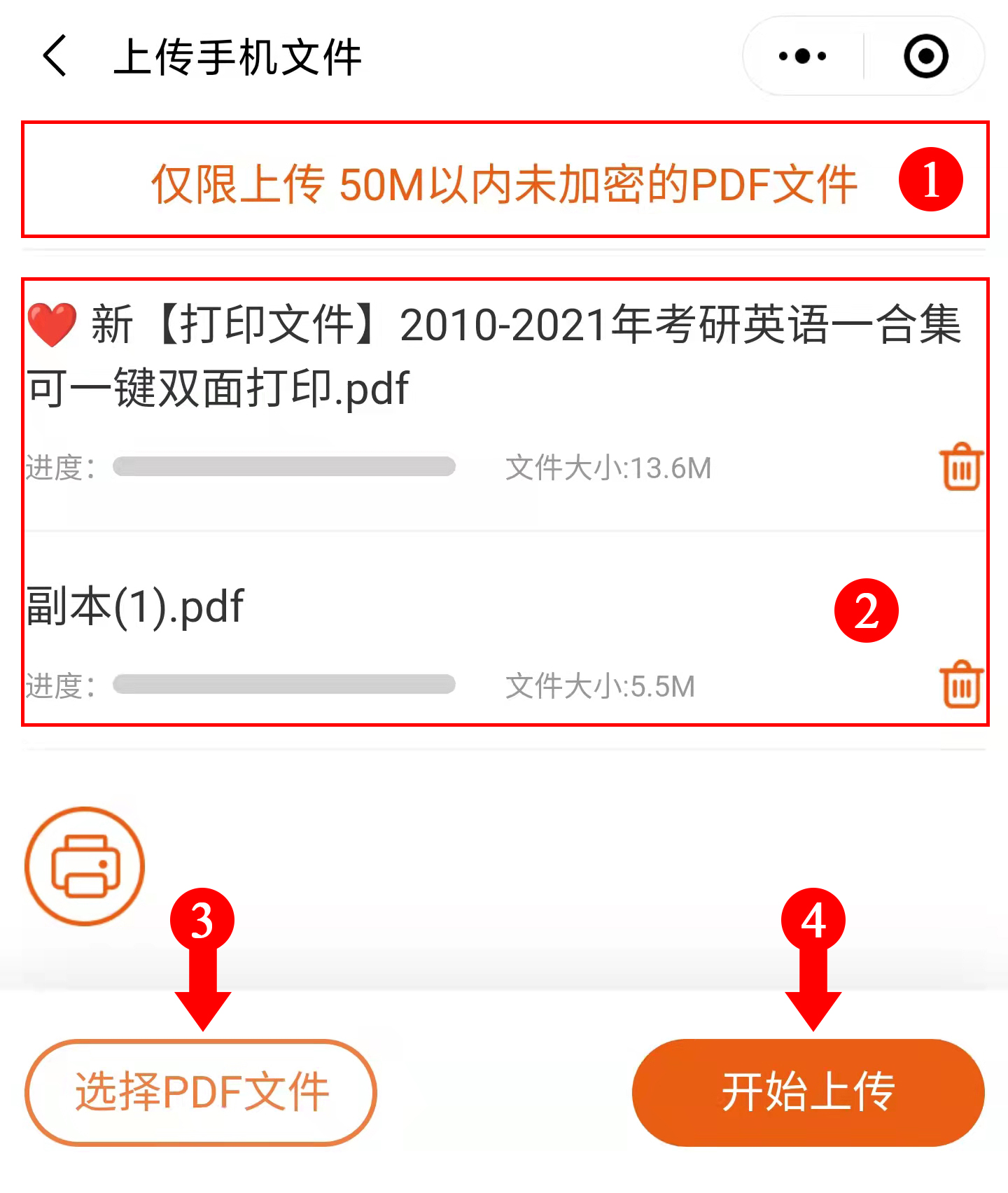 怎样上传PDF文件进行打印?